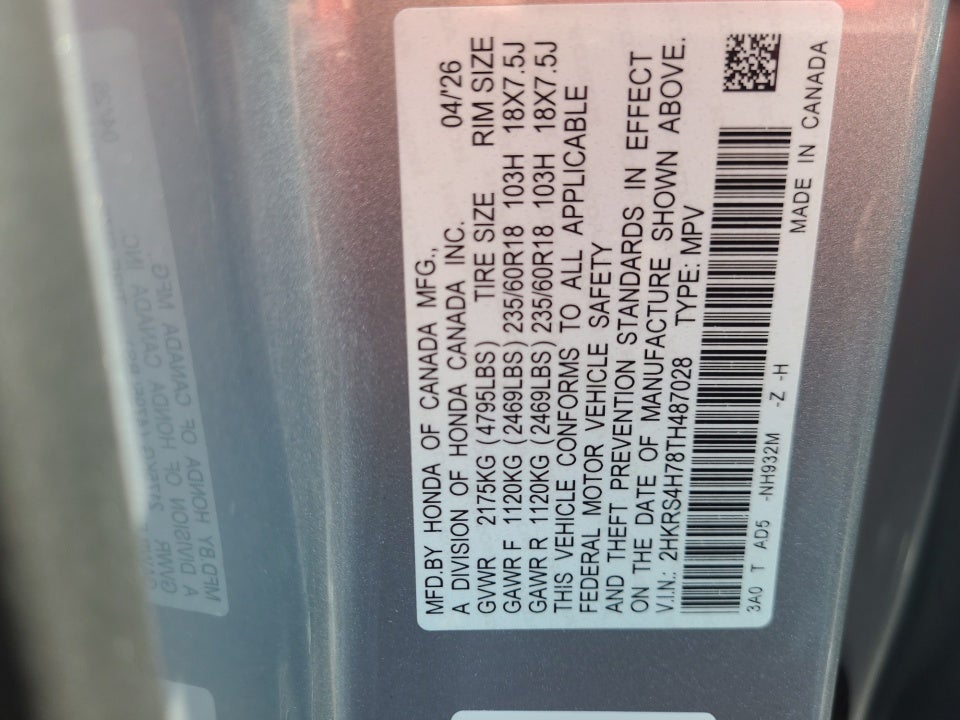 VIN: 2HKRS4H78TH487028