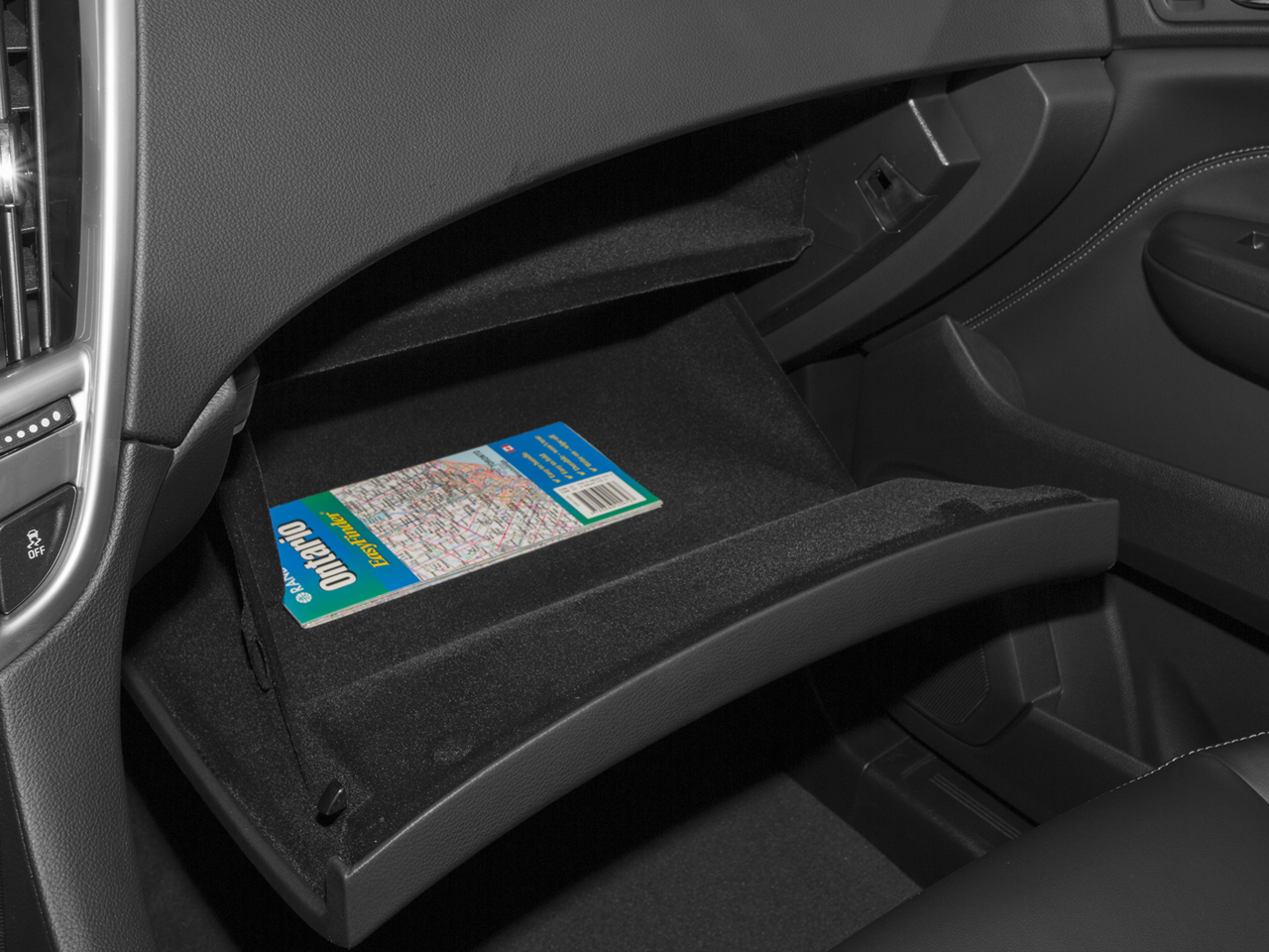 - Cadillac CUE (Cadillac User Experience) Information and Media Control System 8" display featuring touch response, haptic feedback, gesture recognition, proximity sensing, articulating storage door/bin, clock display and compass feature