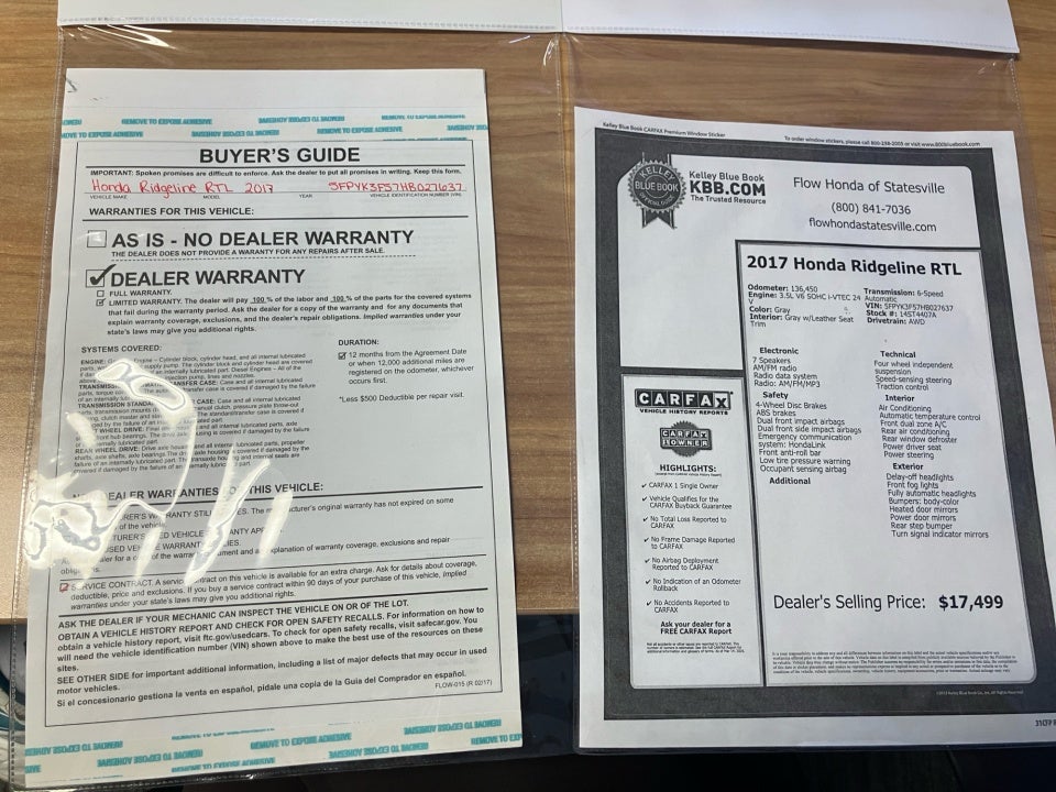 FLOW CERTIFIED! 12 MONTHS/12000 MILE WARRANTY 3 day money back guarantee and a free maintenance package on this 2017 Honda Ridgeline Gray RTL! **