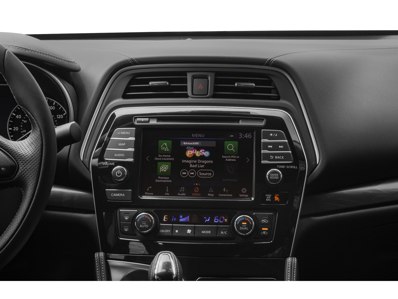 - Radio: AM/FM/CD Audio System w/Navigation -inc: NissanConnect services powered by SiriusXM - automatic collision notification, emergency call and stolen vehicle locator, remote services including start/stop, lock/unlock, flash lights, sound horn, customizable alerts including drive zone, valet, curfew and speed alerts, dealer service scheduling and maintenance alerts, 11 speaker Bose sound system, rear USB ports (charge only, 1 Type-A, 1 Type-C), Nissan door to door navigation w/3D building graphics and satellite imagery, HD radio, SiriusXM Travel Link (weather, fuel prices, movie listings, stock info, sports and parking), SiriusXM Traffic, MP3/WMA reader, NissanConnect featuring Apple CarPlay and Android Auto, 8" color display w/multi-touch control, 2 front illuminated USB connection ports (1 Type-A, 1 Type-C) for iPod interface and other compatible devices, Bluetooth® hands-free phone system, streaming audio via Bluetooth®, hands-free text messaging assistant, swipe to meter functionality, SiriusXM satellite radio w/advanced audio features and auxiliary audio input jack