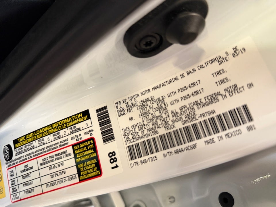 - Front Tire Size: P265/65SR17