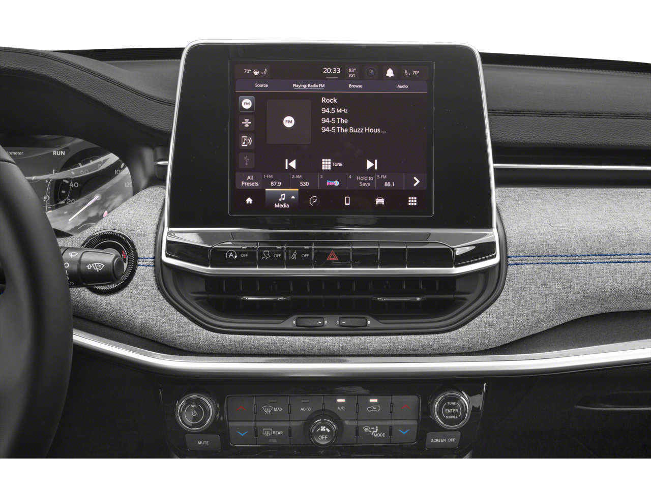 - UConnect 5 w/Seek-Scan, Clock, Aux Audio Input Jack, Steering Wheel Controls and Voice Activation