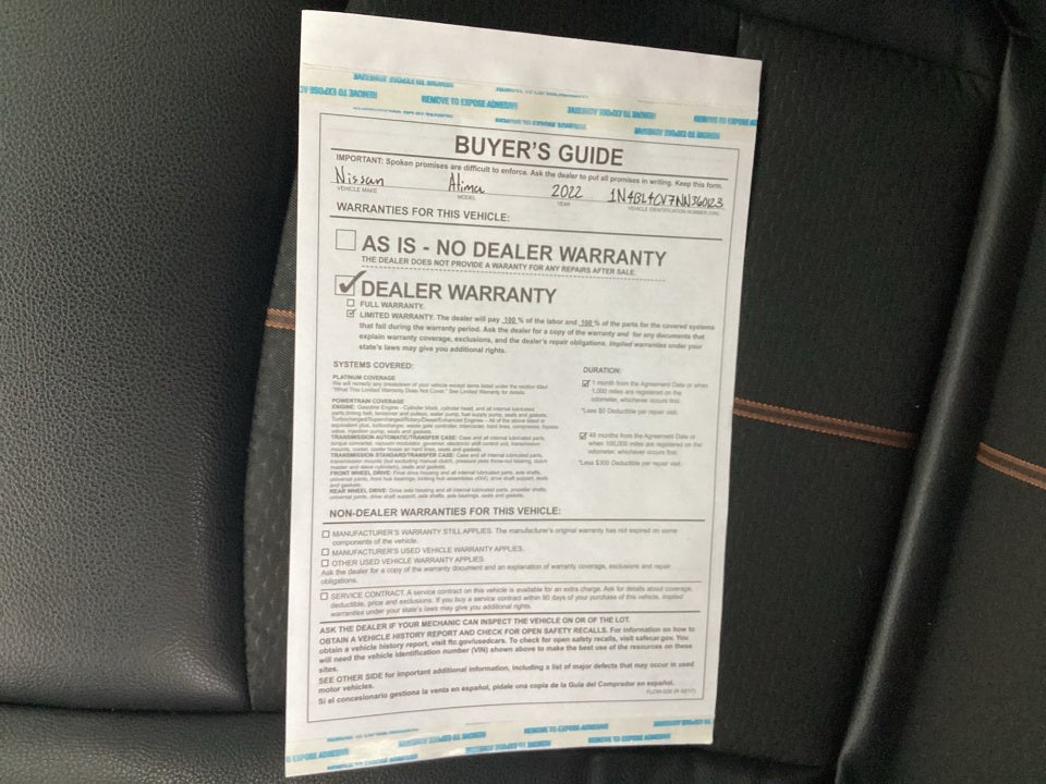 - Vehicle Name: Nissan Altima