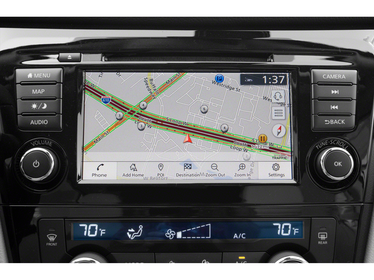 • Radio: AM/FM NissanConnect w/Navigation -inc: Nissan door-to-door navigation, SiriusXM Traffic, SiriusXM Travel Link, 7" color touch-screen display w/multi-touch control, Apple CarPlay, Android Auto, SiriusXM satellite radio, Bluetooth® hands-free phone system, streaming audio via Bluetooth® and hands-free text messaging assistant
