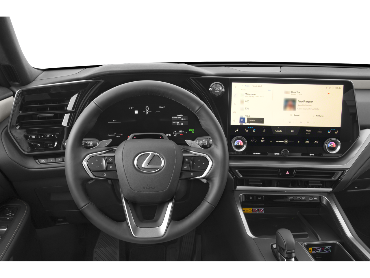 - Radio: Lexus Interface -inc: 12 speakers, 14 inch touchscreen display, Safety Connect and Service Connect w/up to 10-year trial, Remote Connect 3-year trial, Wi-Fi Connect (AT&T hotspot) w/up to 30-day/3GB trial, Drive Connect w/cloud navigation, Intelligent Assistant and Destination Assist 3-year trial, wireless Apple CarPlay integration and wireless Android Auto compatibility