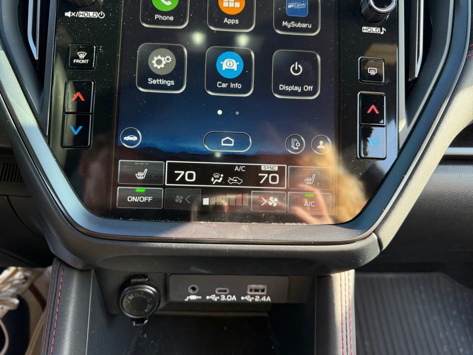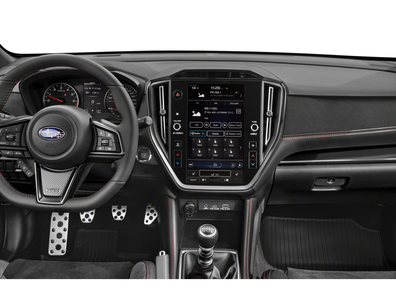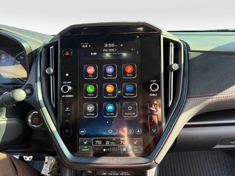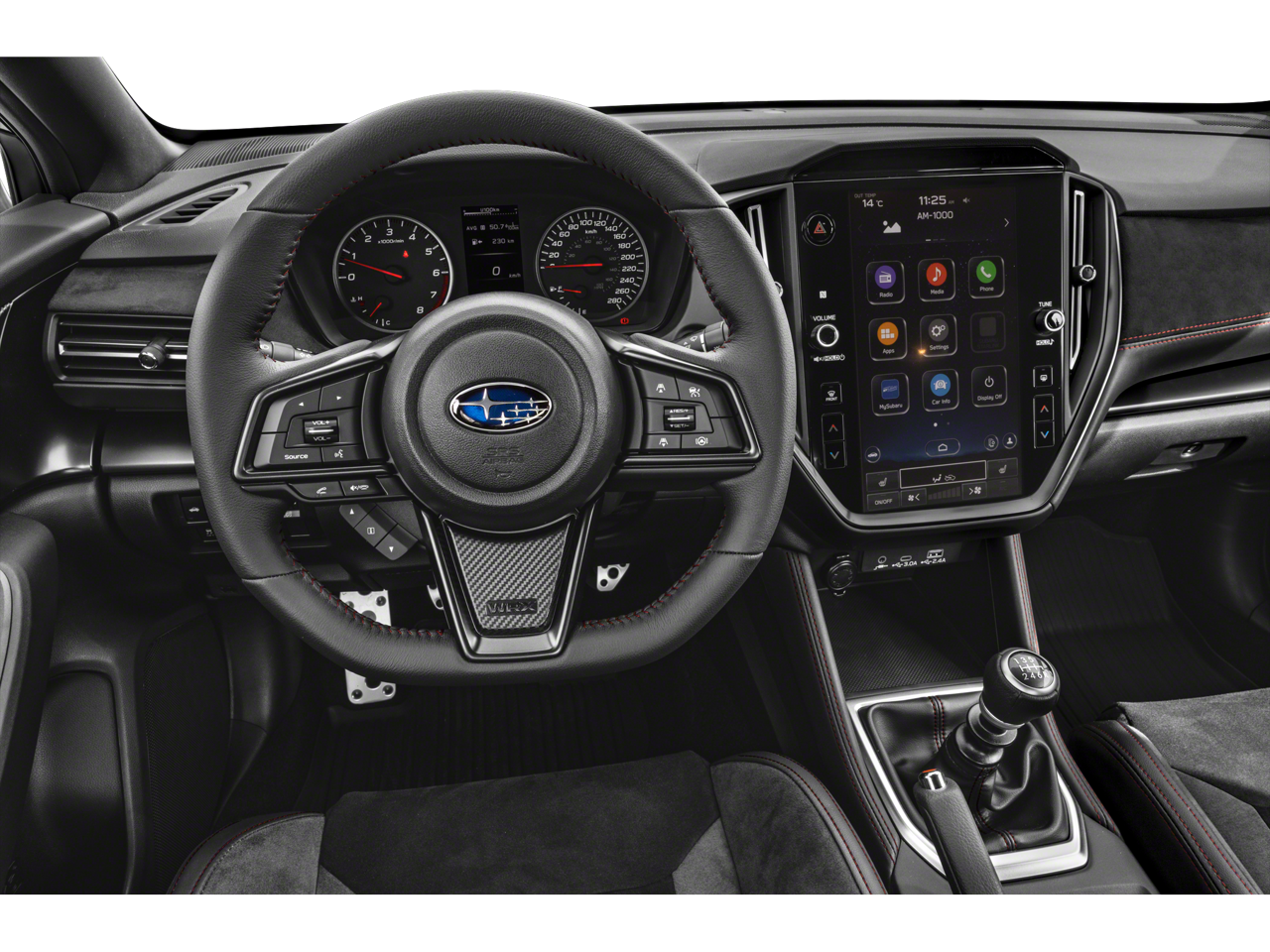 11 Speakers 4-Wheel Disc Brakes ABS brakes Air Conditioning Alloy wheels AM/FM radio: SiriusXM Auto High-beam Headlights Auto-dimming Rear-View mirror Automatic temperature control Brake assist Bumpers: body-color Driver door bin Driver vanity mirror Dual front impact airbags Dual front side impact airbags Electronic Stability Control Emergency communication system: STARLINK Safety and Security (Subscription Required) Exterior Parking Camera Rear Four wheel independent suspension Front anti-roll bar Front Bucket Seats Front Center Armrest Front dual zone A/C Front fog lights Front reading lights Fully automatic headlights harman/kardon® Speakers Heated door mirrors Heated front seats Illuminated entry Knee airbag Leather Shift Knob Leather steering wheel Low tire pressure warning Navigation System Occupant sensing airbag Outside temperature display Overhead airbag Overhead console Panic alarm Passenger door bin Passenger vanity mirror Performance Design Recaro Heated Frt Bucket Seats Power door mirrors Power driver seat Power steering Power windows Radio data system Radio: Subaru STARLINK 11.6" Multimedia Plus Sys Rear anti-roll bar Rear seat center armrest Rear window defroster Remote keyless entry Security system Speed control Speed-sensing steering Split folding rear seat Spoiler Sport steering wheel STARLINK/Apple CarPlay/Android Auto Steering wheel mounted audio controls Tachometer Telescoping steering wheel Tilt steering wheel Traction control Trip computer Turn signal indicator mirrors Ultrasuede & Leather-Trimmed Seats w/Red Stitching Variably intermittent wipers Wheels: 19" x 8.5" Satin Gray Finish Alum Alloy.
