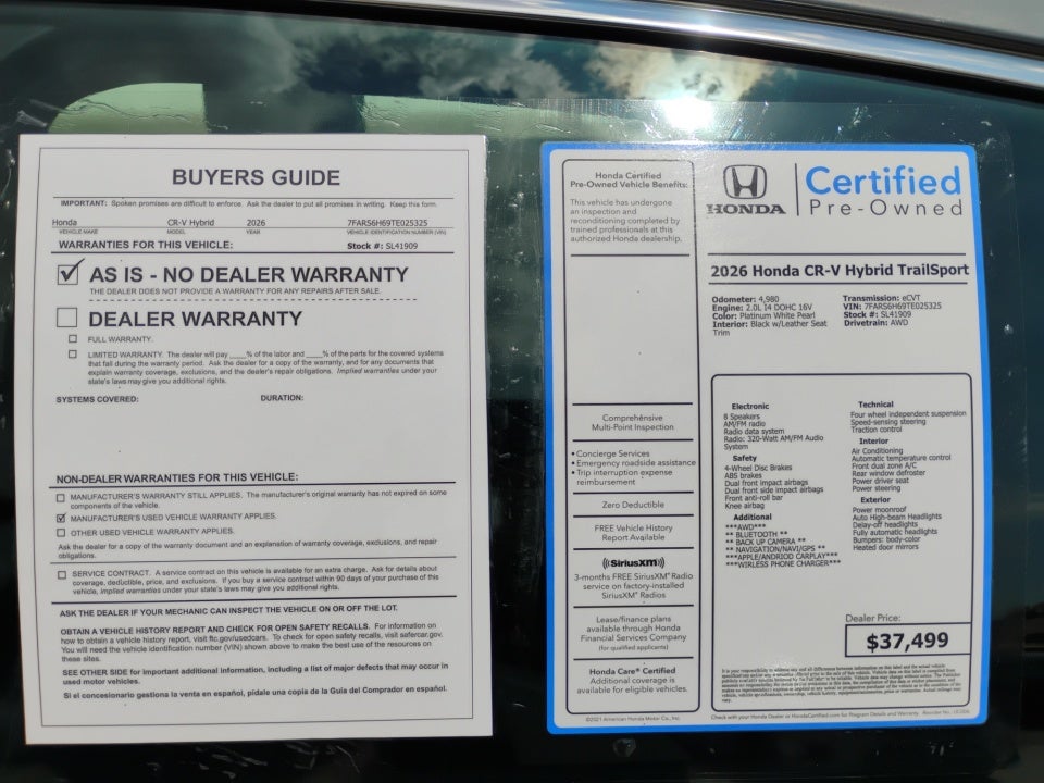 Certified. Certification Program Details: * 182 Point Inspection * Vehicle History Report * Roadside Assistance * SiriusXM 90-Day Trial * Transferable Warranty * Warranty Deductible: $0 * Powertrain Coverage: The Limited Warranty provides Powertrain coverage up to 100k miles or 7 years from in-service date (Whichever occurs first) * Non-Powertrain Coverage: The Limited Warranty provides Non-Powertrain Coverage up to 100k miles or 2 years from the expiration of the New Vehicle Limited Warranty (whichever occurs first) or up to 100k miles or 2 years or from the sale date if the New Vehicle Limited Warranty has already expired.