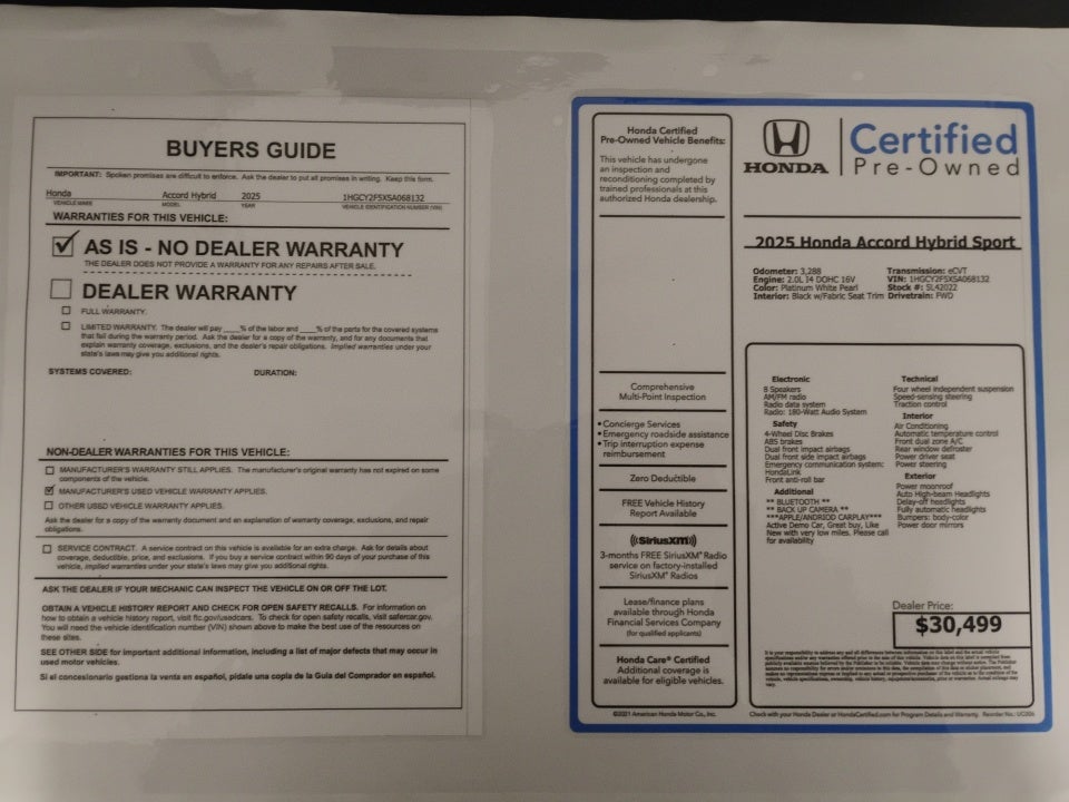 - Vehicle Name: Honda Accord Hybrid