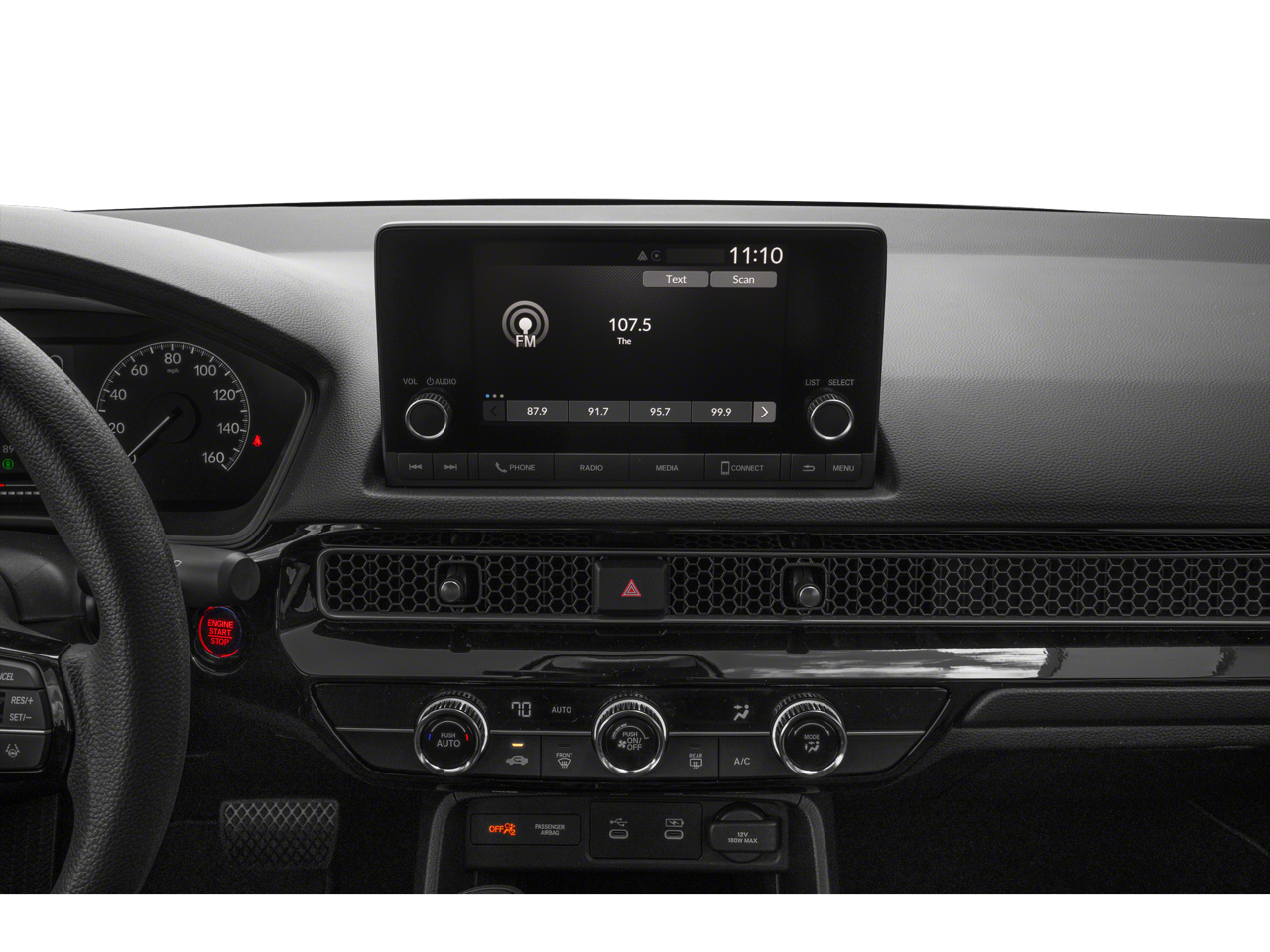 • Radio: 160-Watt Audio System -inc: 4 speakers, 7" color touchscreen, Bluetooth® HandsFreeLink and streaming audio, HondaLink, Speed-Sensitive Volume Compensation (SVC), Radio Data System (RDS), Apple CarPlay and Android Auto compatibility and USB-C 3.0A smartphone/audio interface port in front console