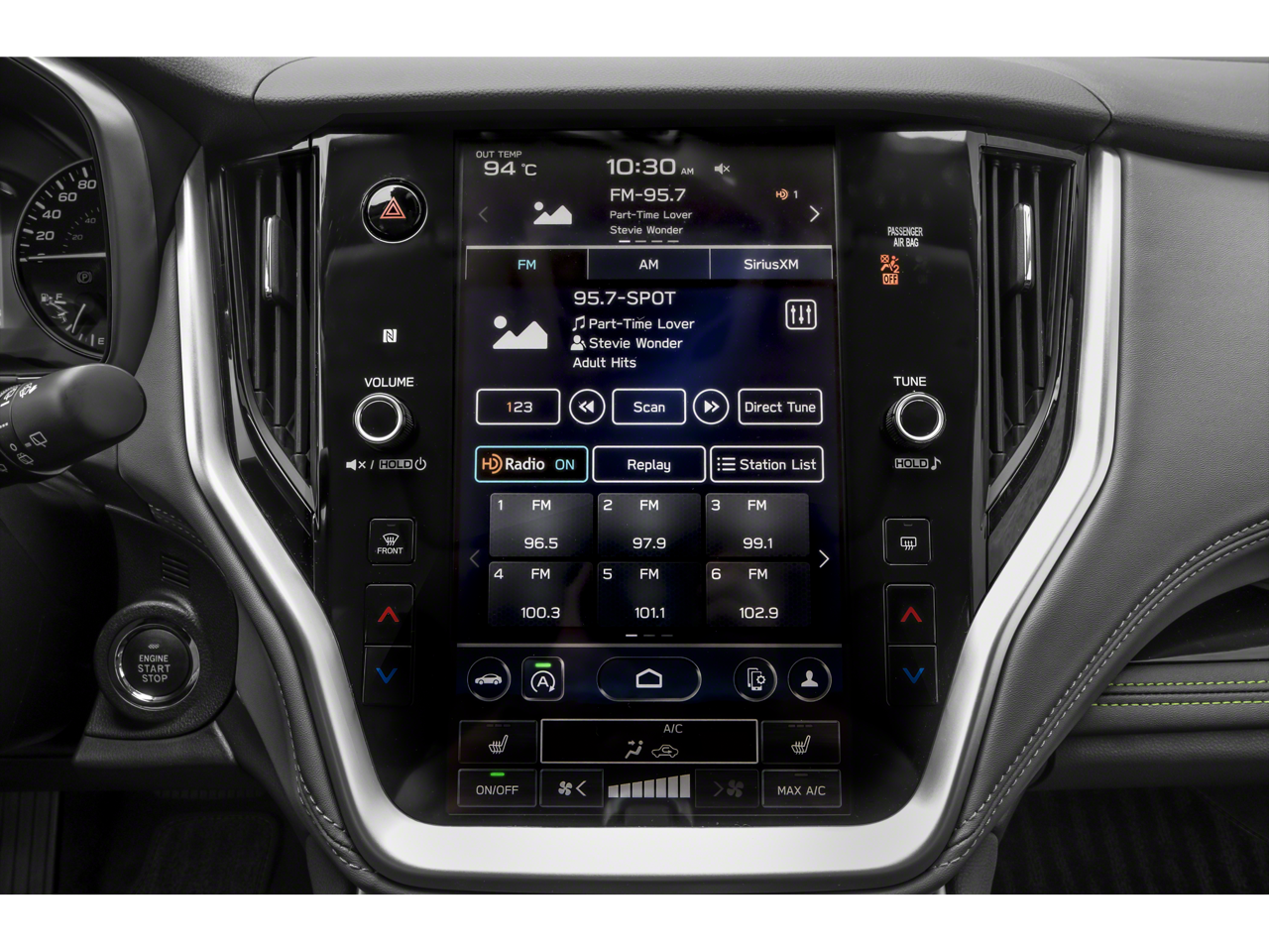 • Radio: Subaru 11.6" Multimedia Plus System -inc: AM/FM stereo, HD Radio, valet mode, multi-touch gesture high resolution display screen, voice activated controls, Bluetooth® audio streaming and hands-free phone connectivity w/SMS text messaging (refer to subaru.com for cell phone compatibility), Near Field Communication (NFC), iPod control capability, SiriusXM w/360L (4 months free trial/subscription required after), SiriusXM Travel Link (3 years free trial/subscription required after), smartphone integration for Android Auto and Apple CarPlay w/full screen view and wireless connection, USB and Over The Air (OTA) audio system update, audio system and Bluetooth® steering wheel control switches, 576 watt harman/kardon surround sound system w/12 speakers, illuminated 3.5mm auxiliary input jack and illuminated USB-A and USB-C input/charge ports