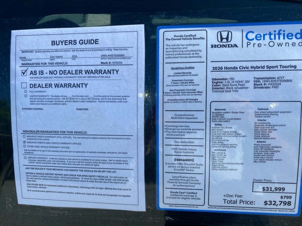 - Vehicle Name: Honda Civic Hatchback Hybrid